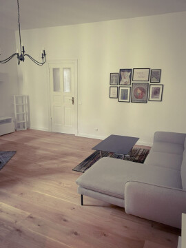 The rooms are rented furnished. The windows in the rooms are huge and the sun shines into the room. The rooms has a bed (mattress 1.40 x 2.00m), a desk and a chair, a sofa plus coffee table, 1 armchair, chest of drawers, 1 closet, a large mirror... Blankets and pillows can be provided.