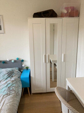 Room has a brand new bed (140 x 200 cm) but can be rented without furniture. The other furniture as shown in the pictures can be taken over from the current roommate. Registration is possible.
