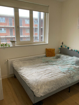In de kamer staat een nieuw bed (140x200 cm), maar indien gewenst kan de kamer kan ook worden opgeleverd zonder bed. Overige meubels zijn ter overname van de huidige huisgenoot. Inschrijven is mogelijk.